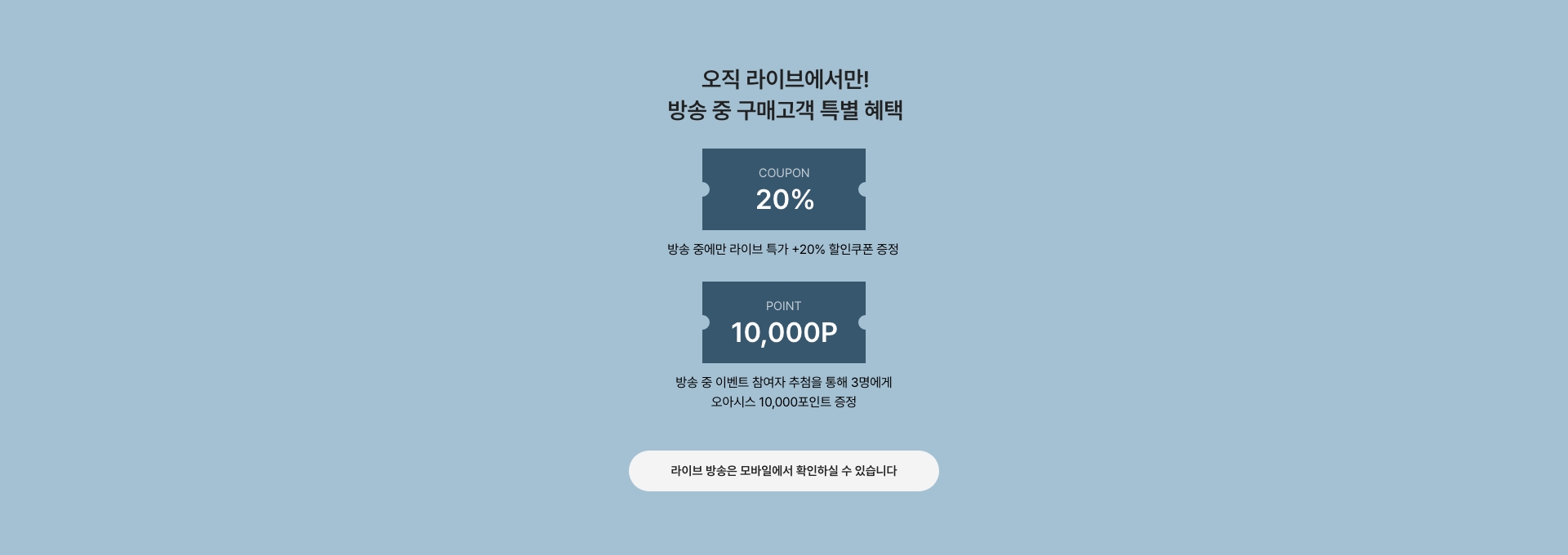 라이브방송 시청자들에게만 드리는 방송 중 구매고객 특별 혜택