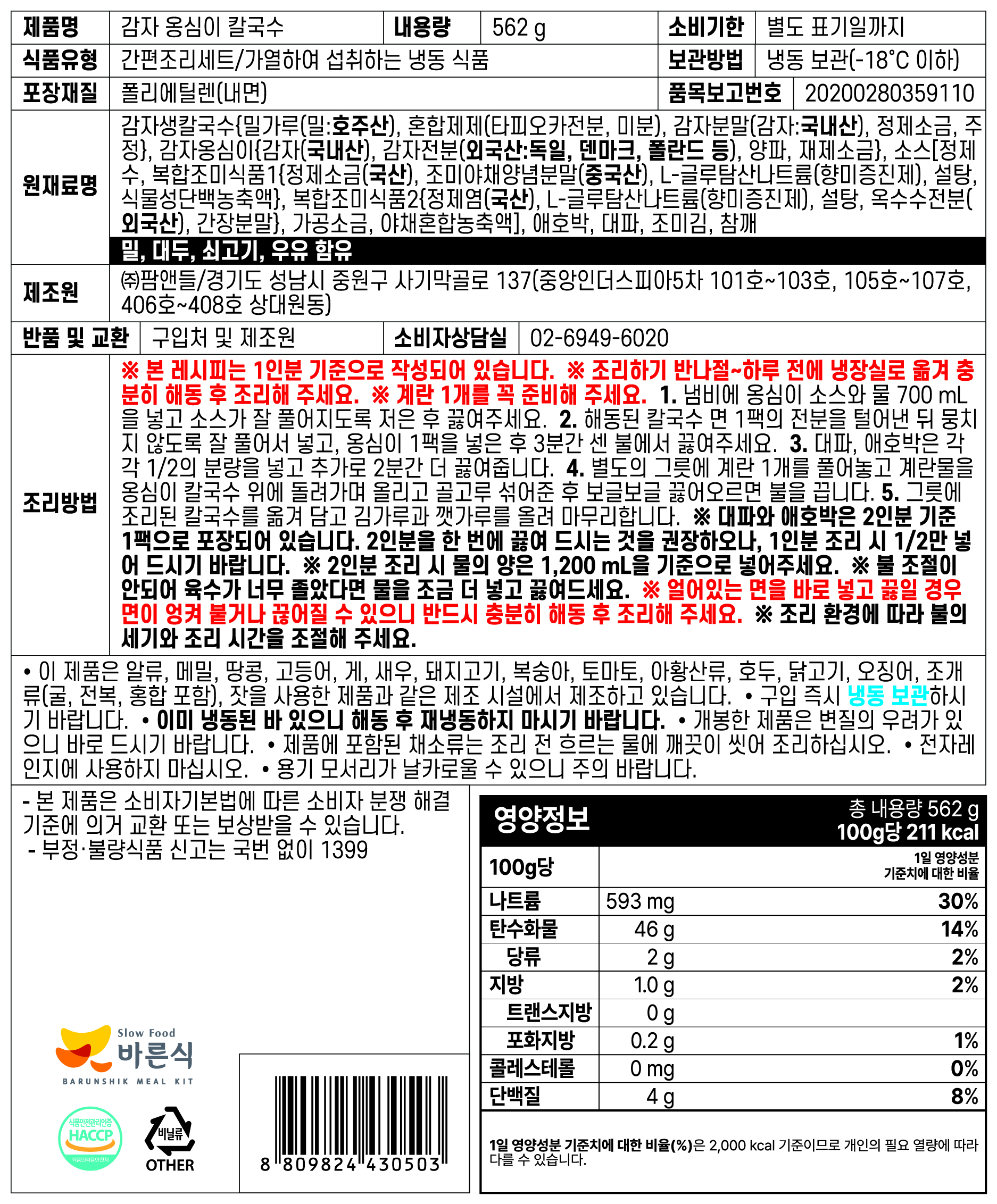 감자 옹심이 칼국수 (2인분/밀키트)
