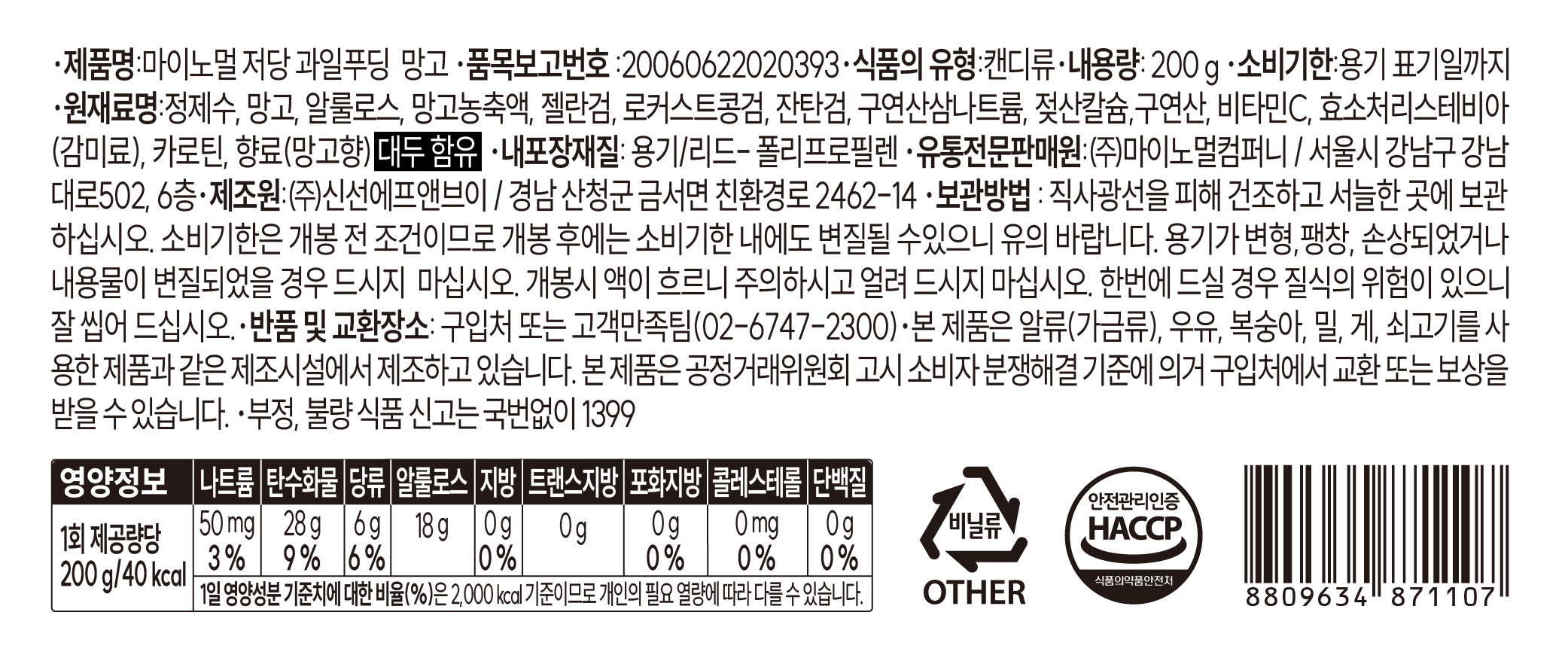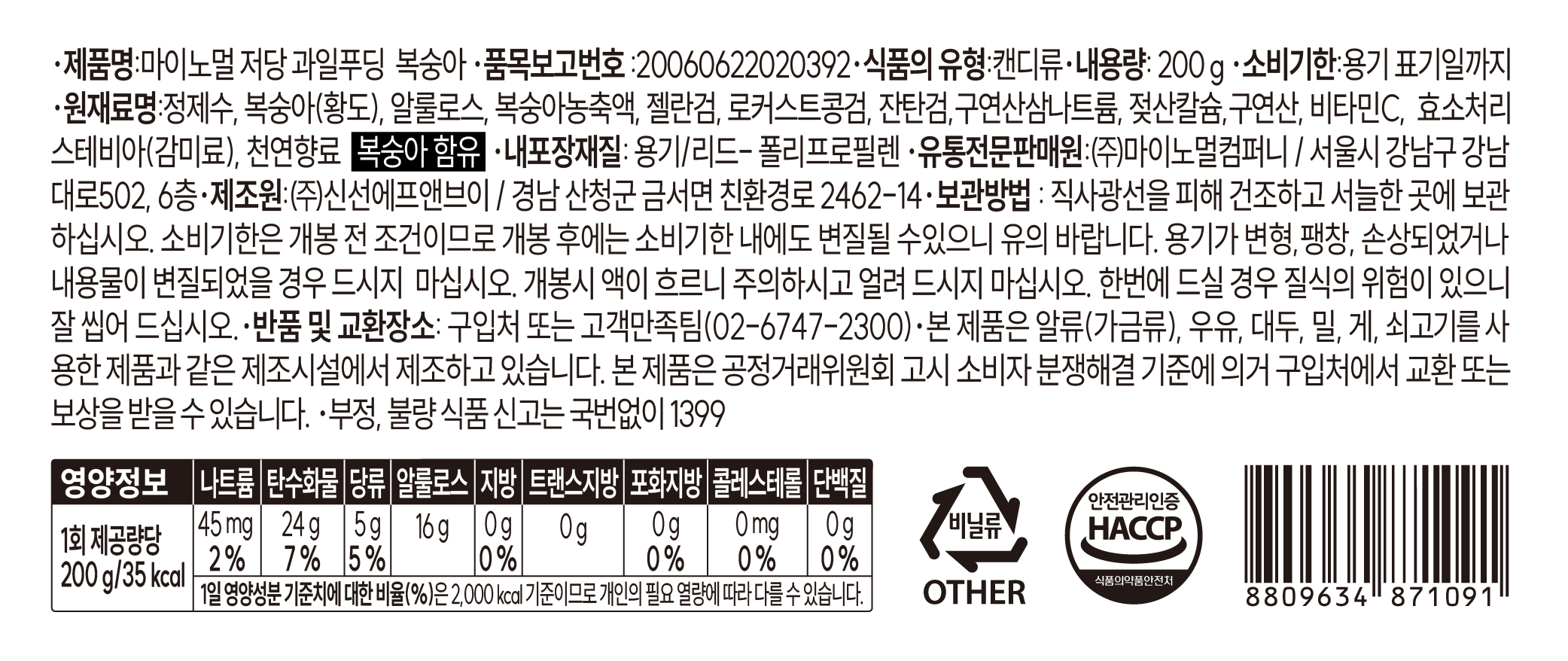 마이노멀 저당 과일푸딩 6개입 (망고, 복숭아)
