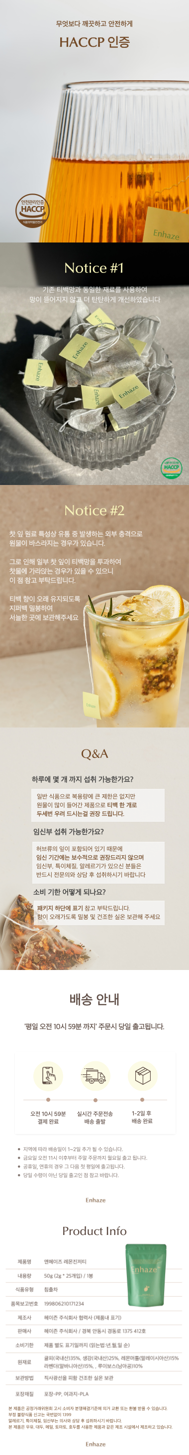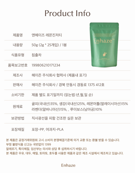 • Enhaze 앤헤이즈 레몬진저티, 이너뷰티, 순환차, 무카페인차 1팩