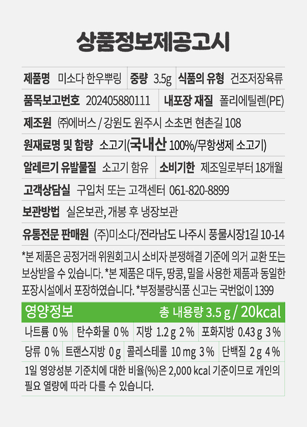 미소다 한우뿌링3.5g*10개입/20개입