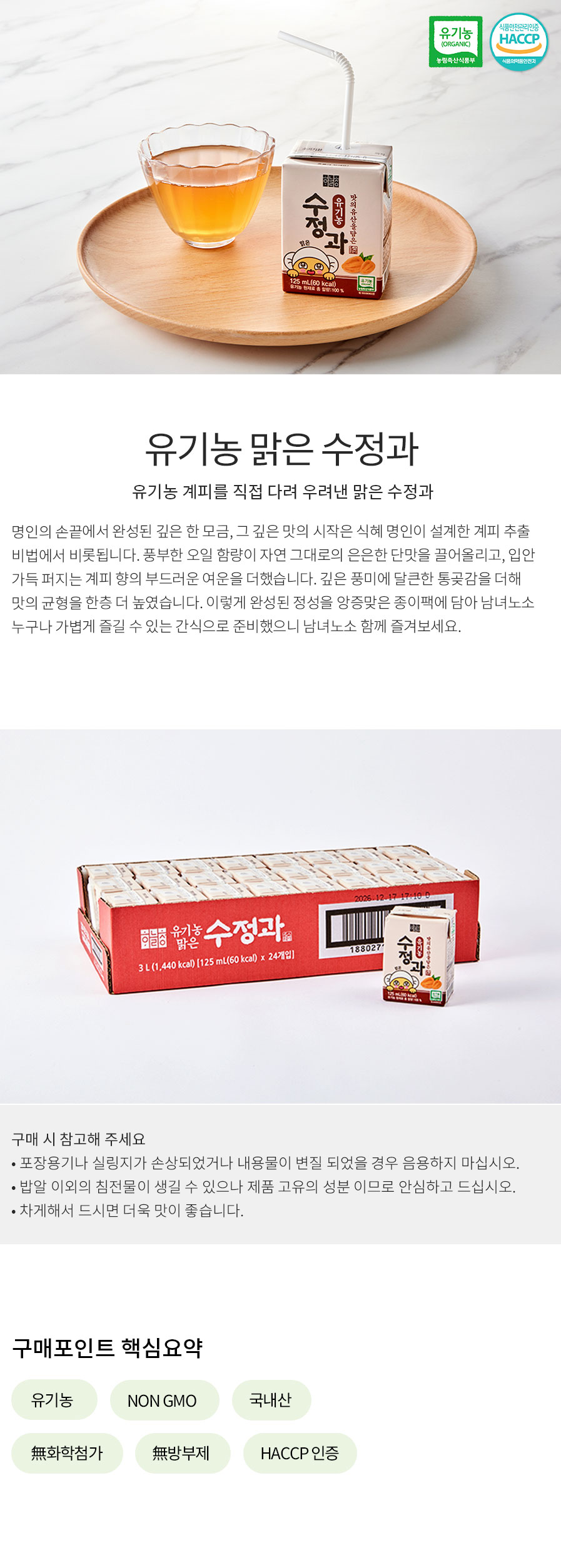 [유기농, 유기가공식품, HACCP, 국내산, 無화학첨가, 無향미증진, 無색소, 無표백, NON GMO]