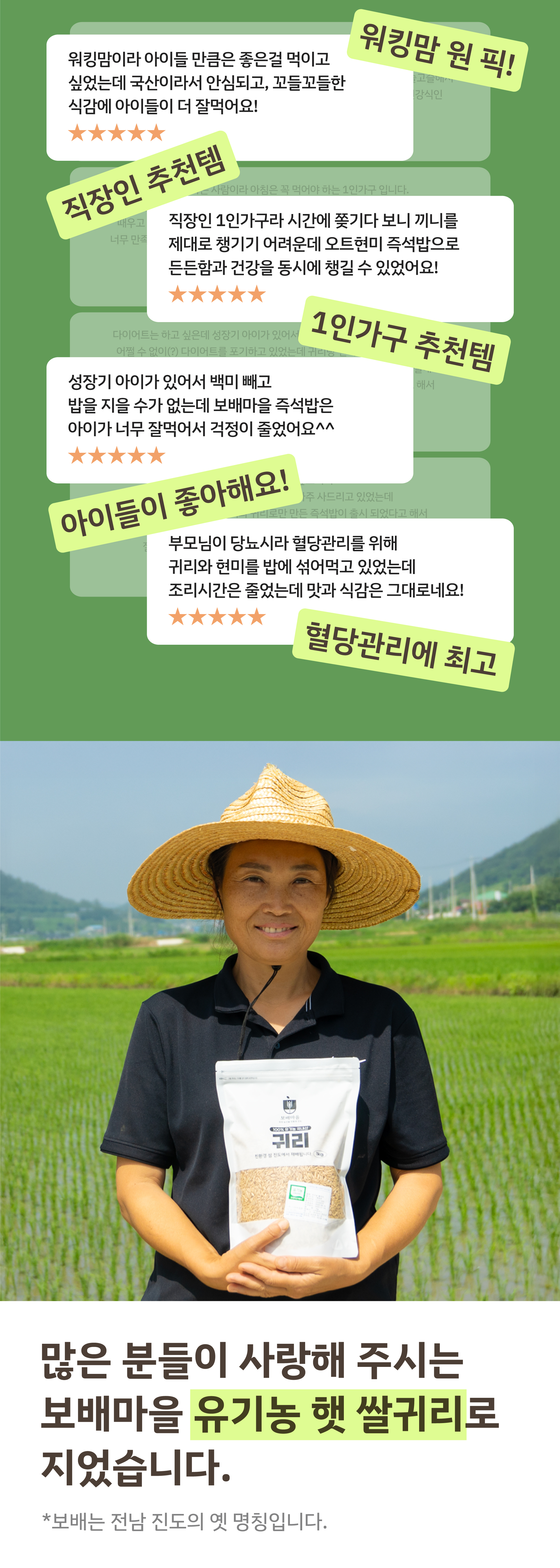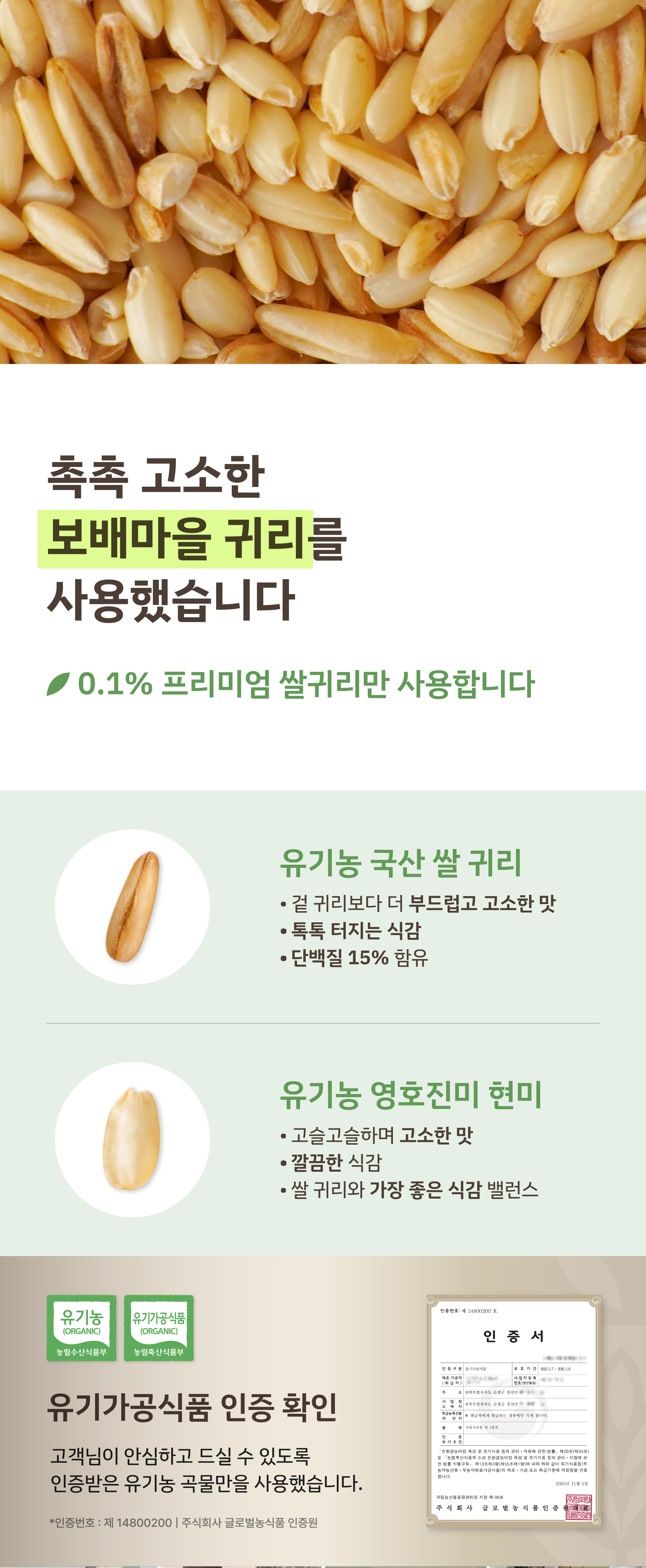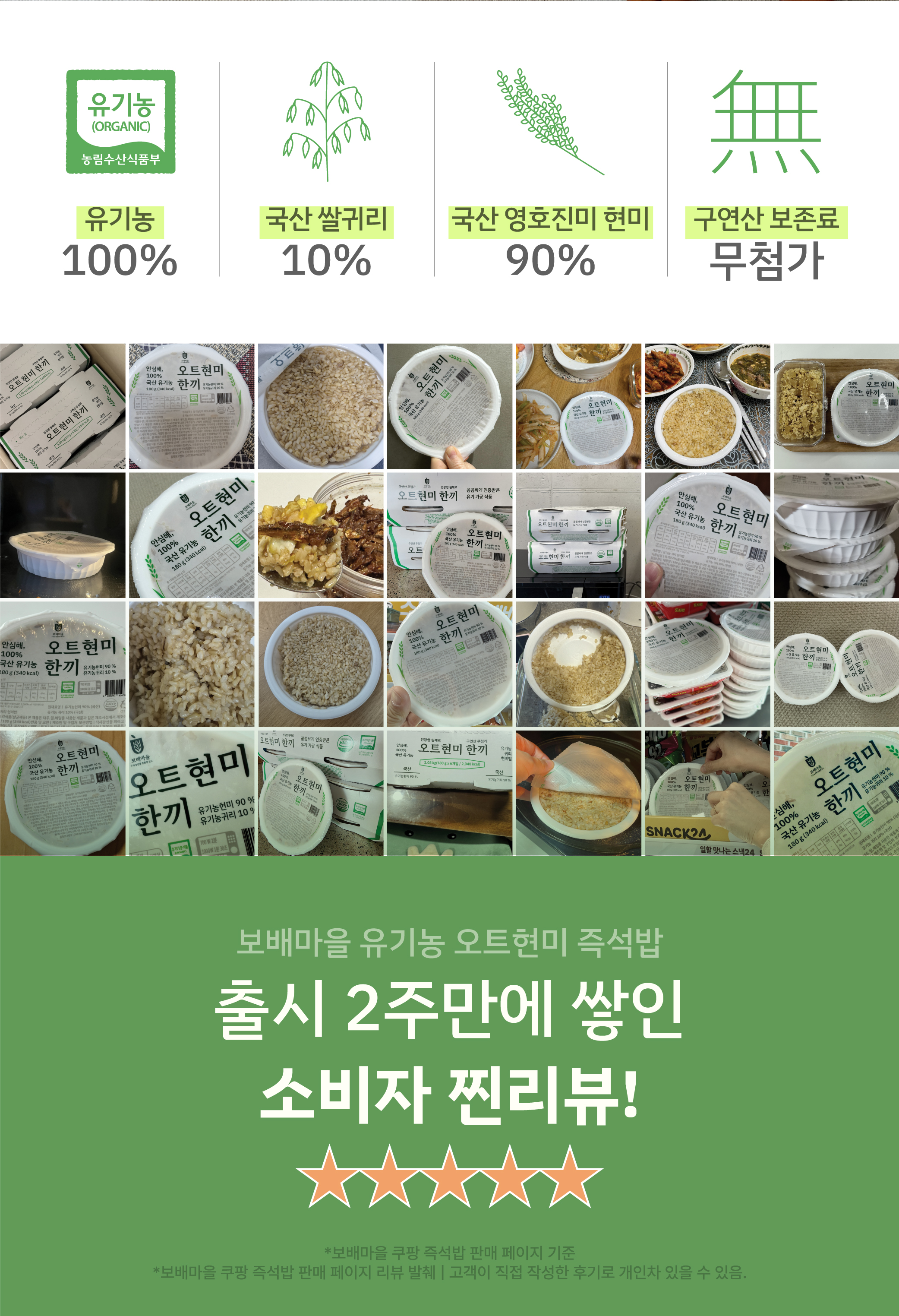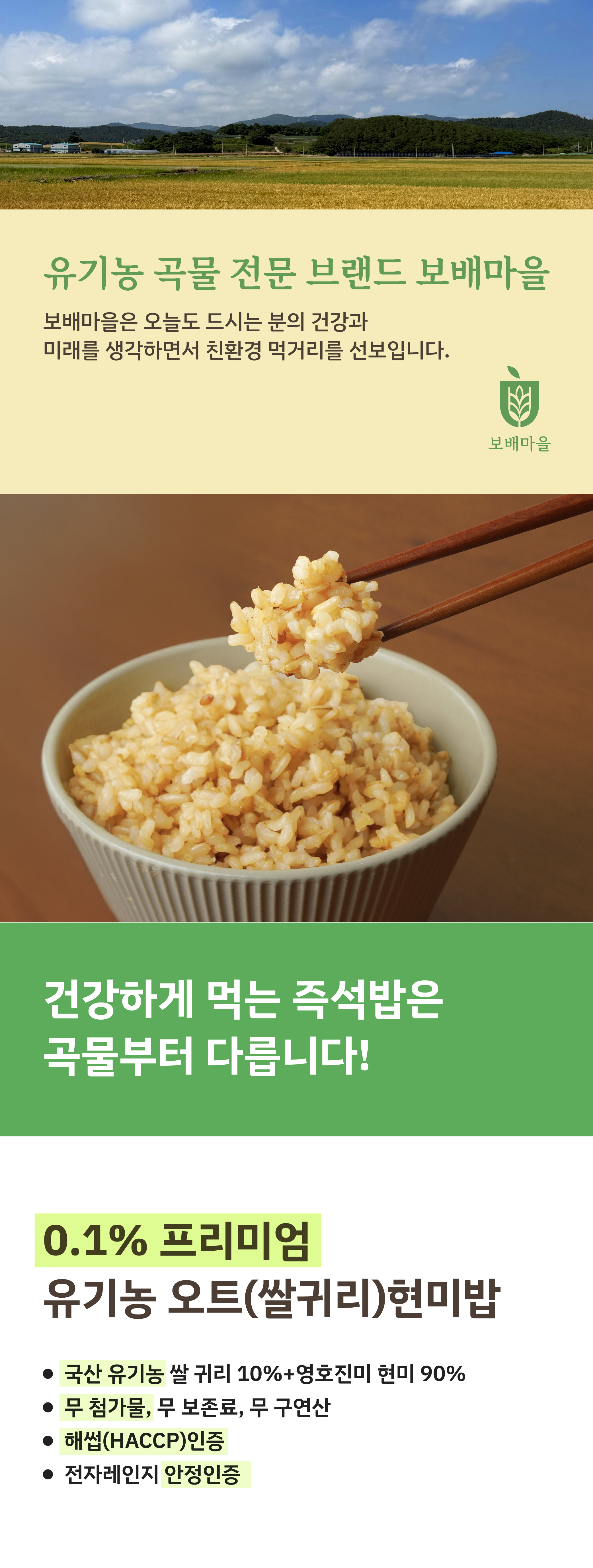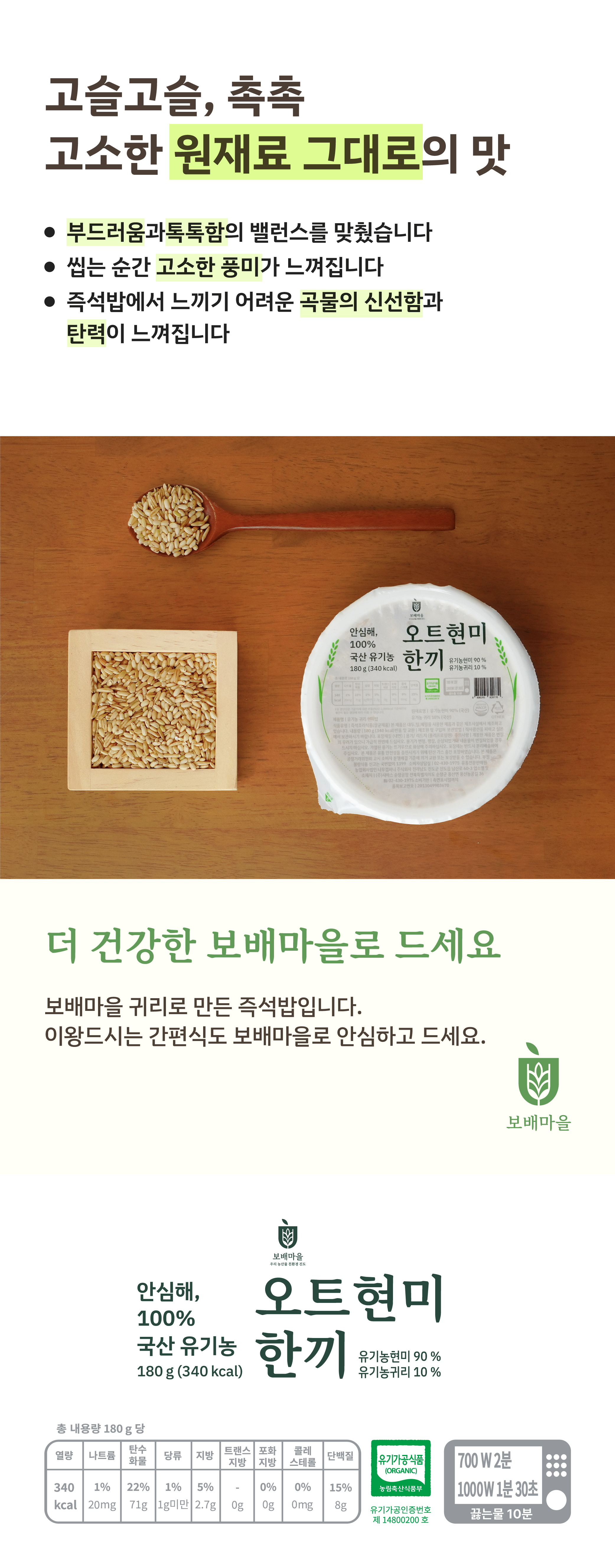 국산 유기농 현미 (90%) / 국산 유기농 귀리 (10%)