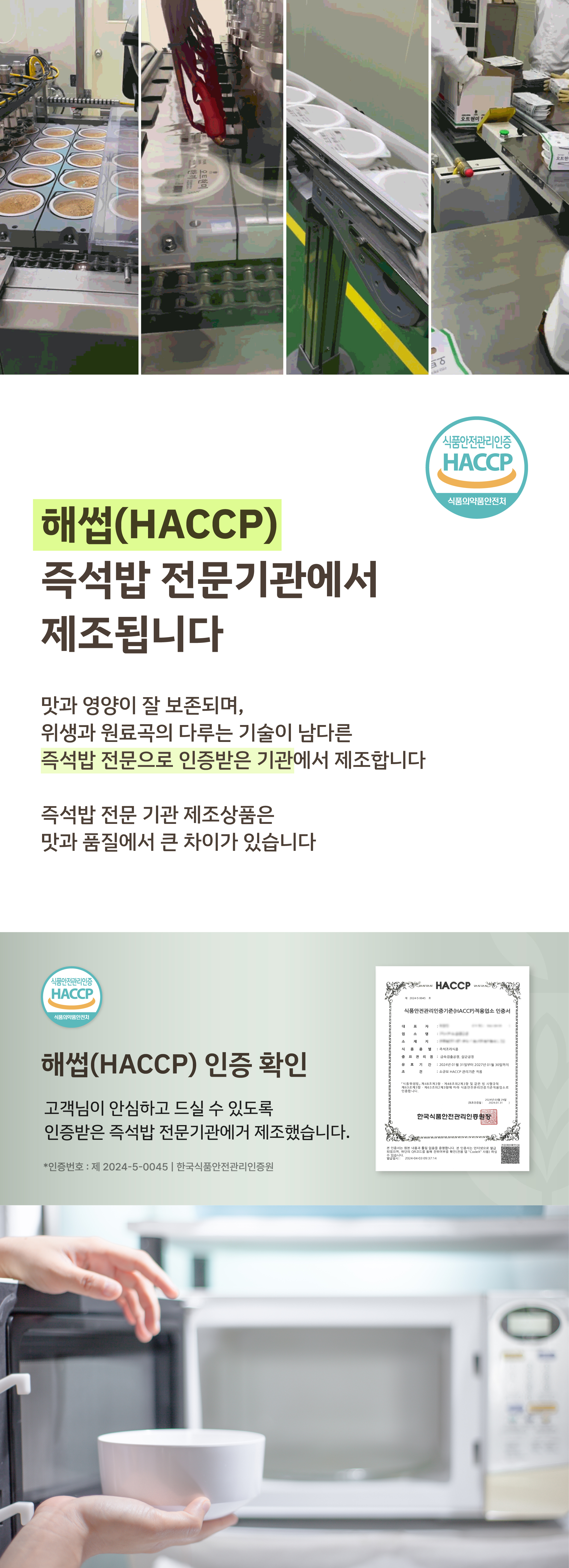 개봉한 제품은 변질의 우려가 있으니 가급적 한번에 드십시오. 용기가 변형, 팽창, 손상되었거나 내용물이 변질되었을 경우 드시지 마십시오. 가열된 용기는 뜨거우므로 화상에 주의하십시오. 포장재는 반드시 분리배출하여 주십시오. 본 제품은 유통 안전성을 증진시키기 위해 탄산 가스 충전 포장하였습니다. 본 제품은 공정거래위원회 고시 소비자 분쟁해결 기준에 의거 교환 또는 보상받을 수 있습니다. 부정 불량식품 신고는 국번없이 1399