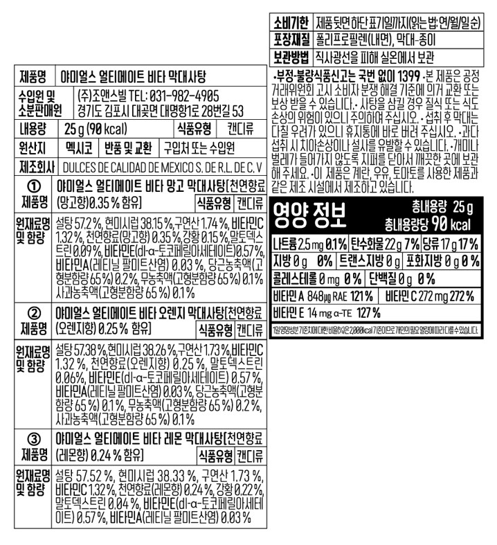야미얼스 막대사탕 25g