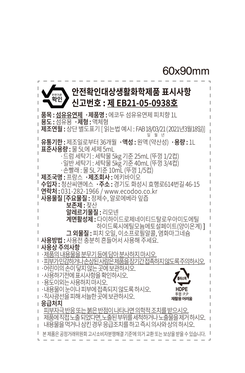 • 에코두 아기겸용 섬유유연제 피치 1L x 2개