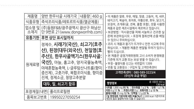 • 양반 한우사골시래기국 460g