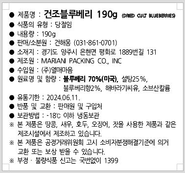 • [1+1구성] 건해몽 새콤달콤 건블루베리 190g+바나나칩 190g(1+1)
