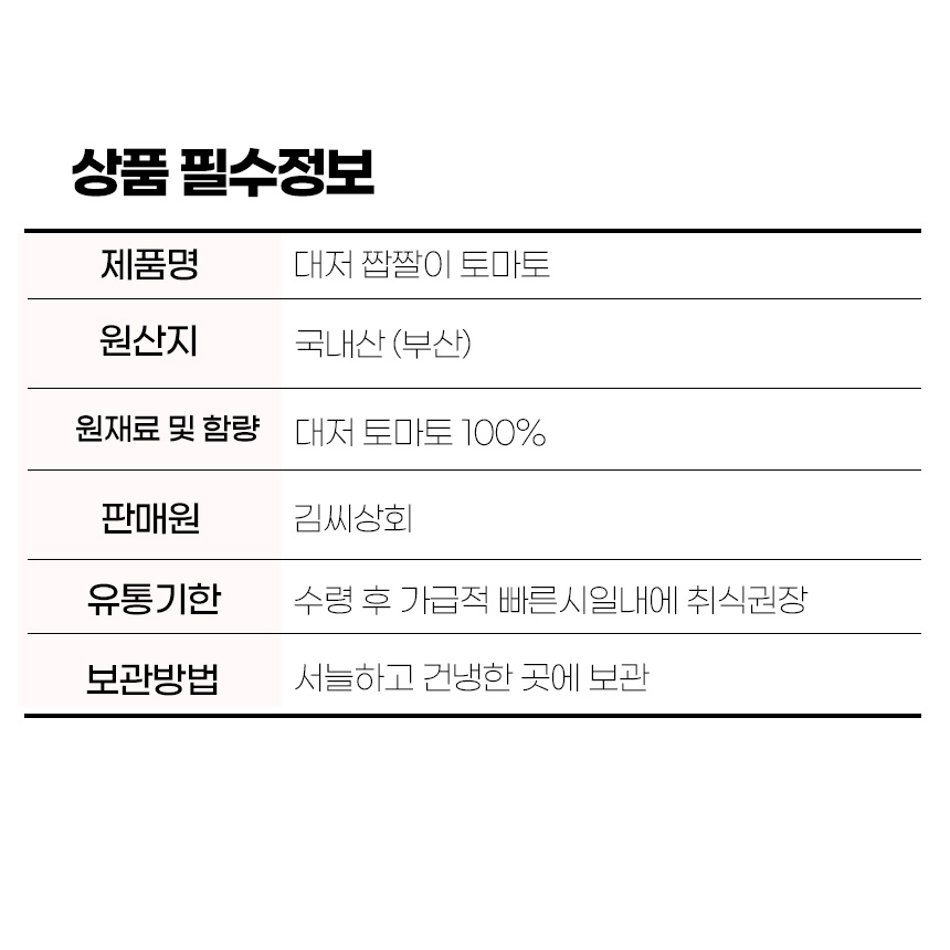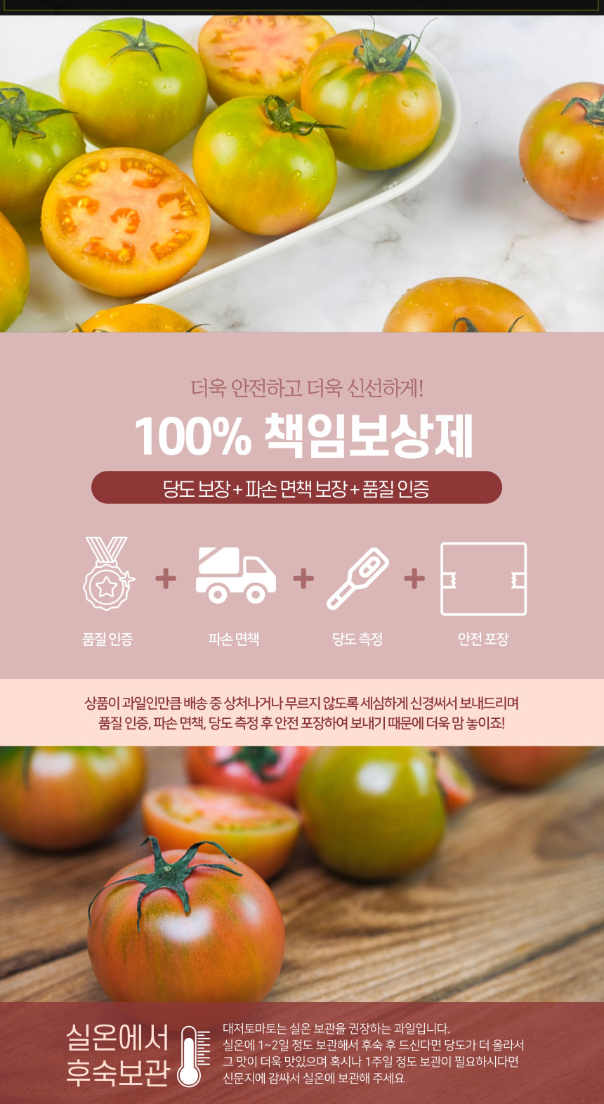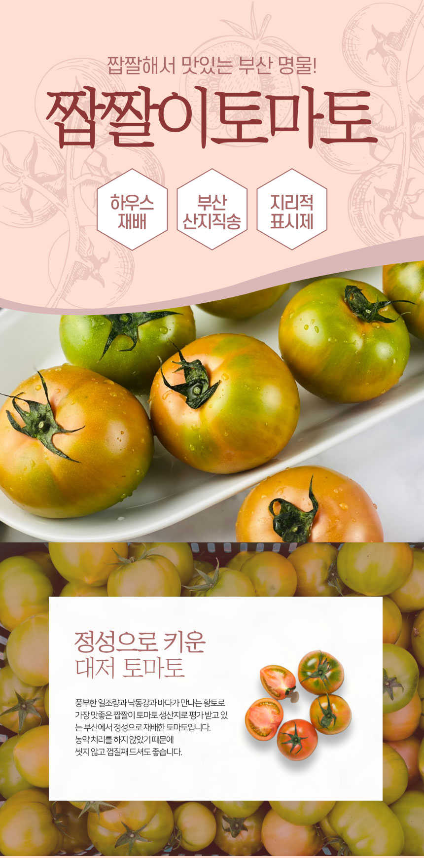 짭짤이토마토는 껍질이 얇아 식감이 부드럽고 수분이 많으며, 쫄깃하고 짭짤한맛이도는 새콤달콤함이 특징입니다